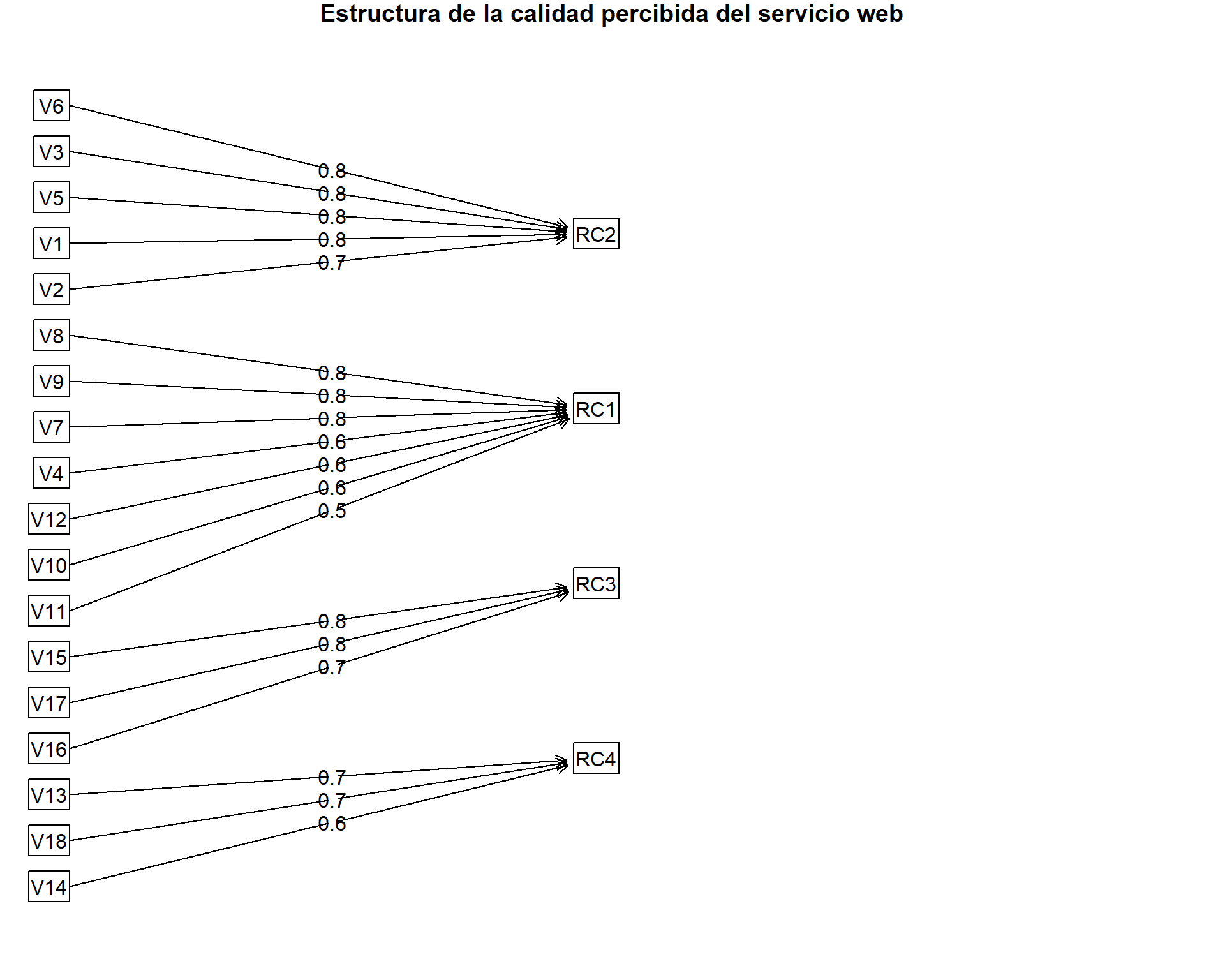 fa.diagram(output_final, main = "Estructura de la calidad percibida del servicio web")