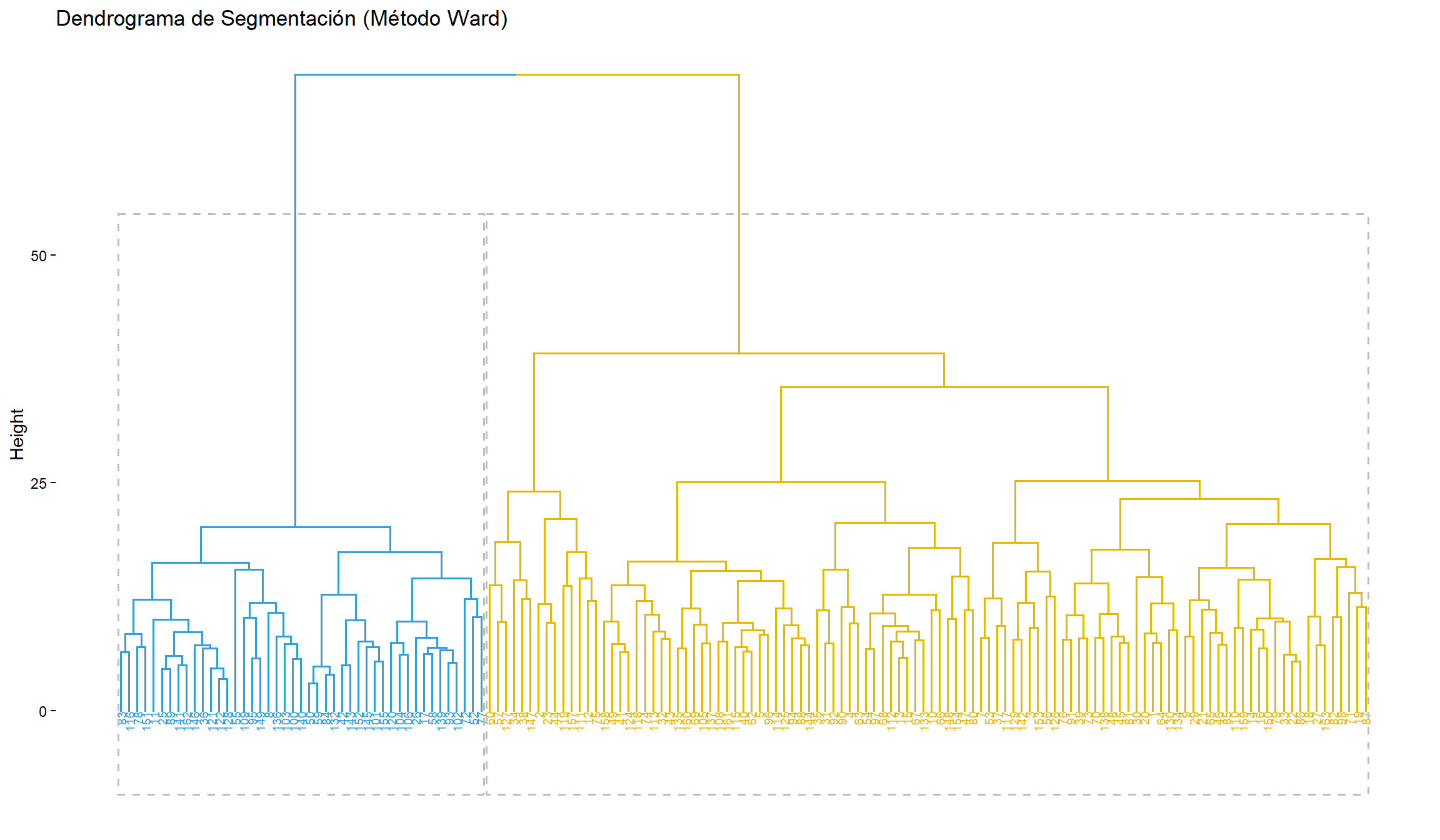 main = "Dendrograma de Segmentación (Método Ward)")